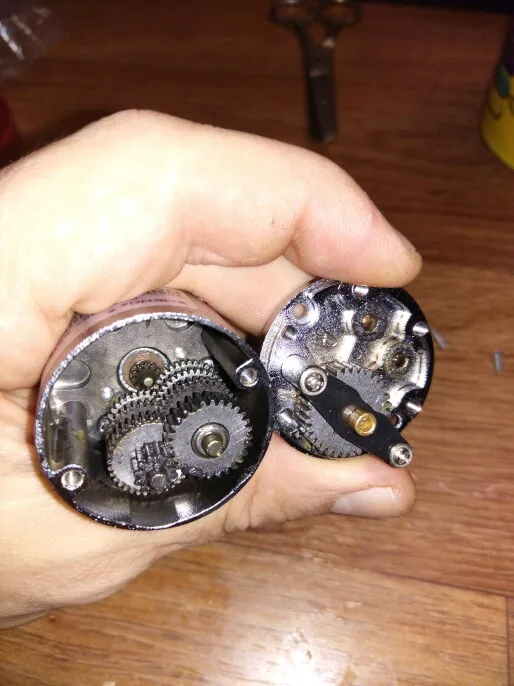 качественный редуктор, и мотор работает тихо при 24 вольтах. Действительно 2 оборота в минуту на валу, как и заявлено. Единственное, рекомендую раскидать редуктор и смазать его, что я и сделал (на фото уже со смазкой).