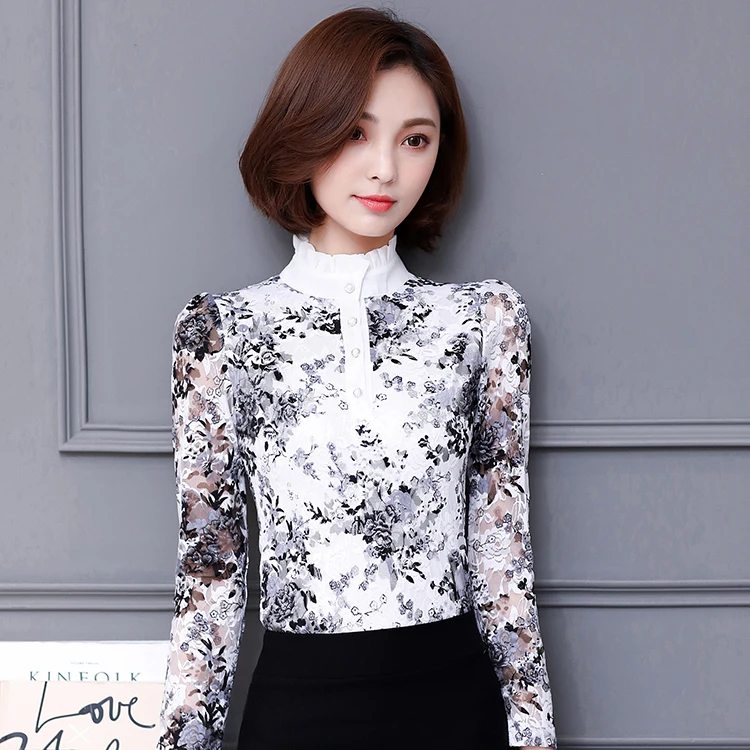 Новинка 2022, модная Брендовая женская рубашка Blusa, приталенная пирнированная рубашка, женские кружевные топы с длинным рукавом, Женская кружевная блузка, размеры 4XL, 36i 25