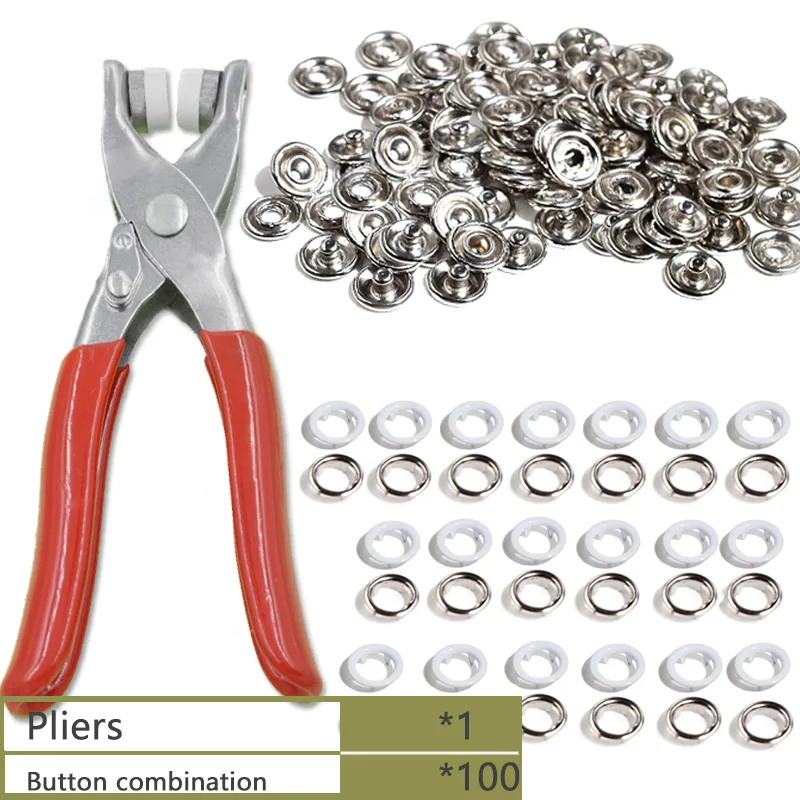 100 комплектов Металлических Заклепок, заклепки с белыми красками, инструмент для установки, заклепки, кнопка для детской одежды, 10 цветов на выбор