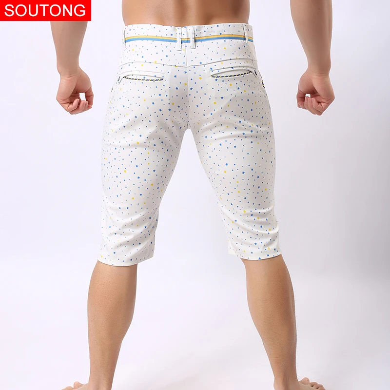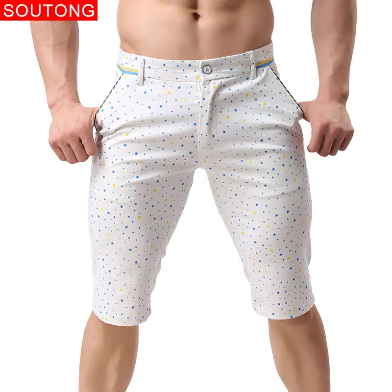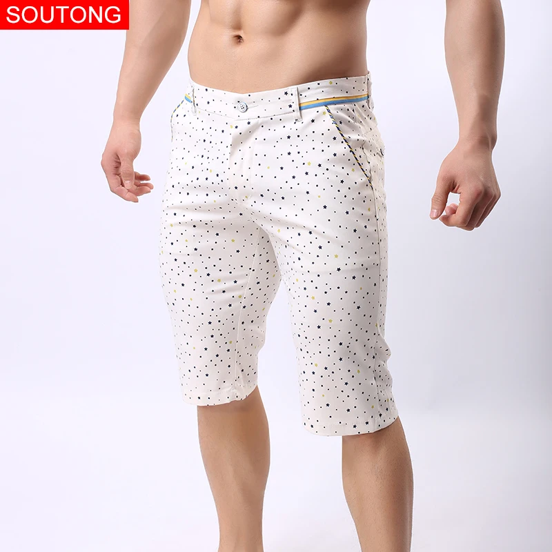Шорты Soutong мужские повседневные хлопковые, облегающие прямые штаны в горошек с принтом звезд, qfk03, лето 2019