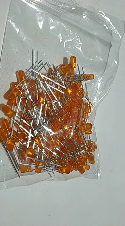 Светодиоды яркости ниже средней, что и требовалось. Цвет свечения соответствует оранжевому. Хорошие матовые индикаторные светодиоды 3мм. Советую к покупке товар и продавца.