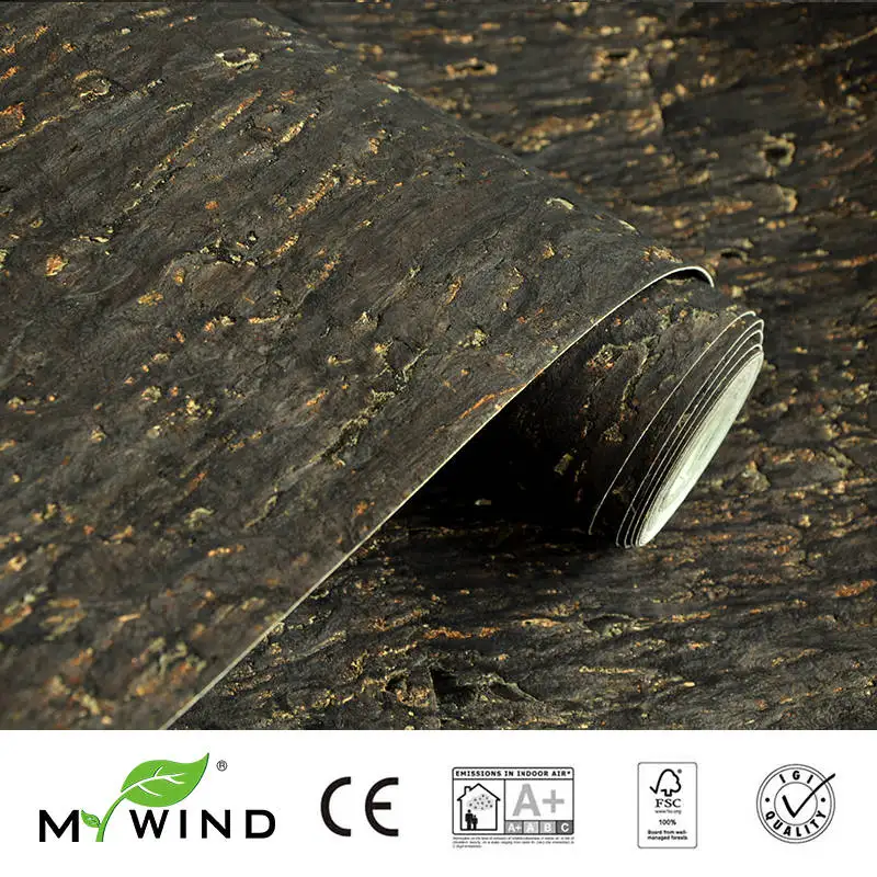 2. Эти красивые прочные обои напоминают кору дерева, по веским причинам. Текстурированное вещество является натуральной пробкой, но показано в фантазийных цветовых сочетаниях с ярким металлом, просвечивающимся. Это органическое, но утонченное настенное покрытие будет потрясающим в пост-современной городской квартире или смелом утонченном домике.