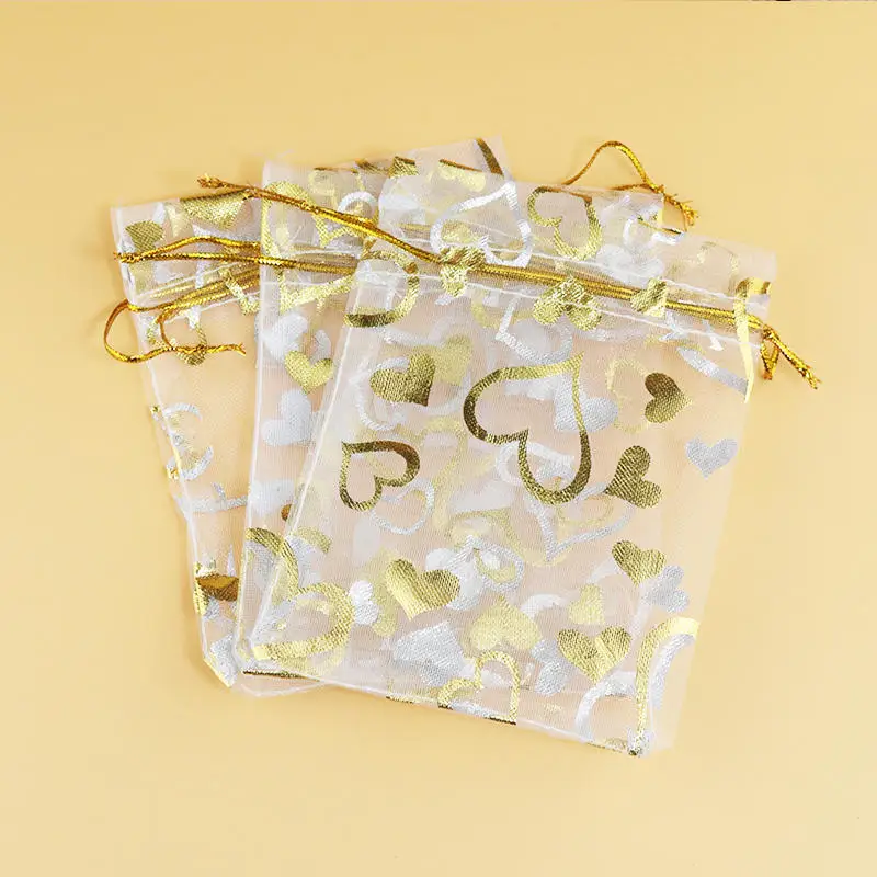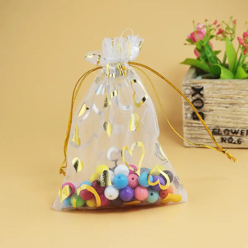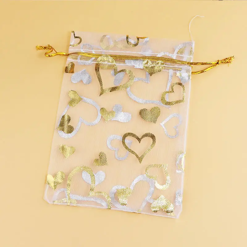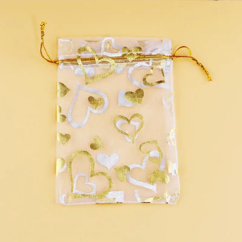 7x9 см (2,7 "x 3,5") мешочек из белой органзы, дизайн сердца, упаковка для свадебных украшений, милый мешочек из органзы, подарочные сумки на шнурке, 100 шт.