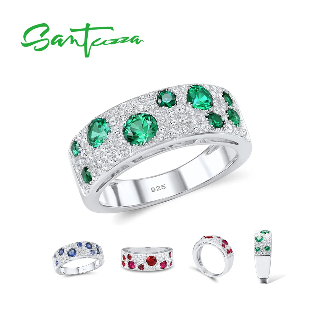 Женское серебряное кольцо SANTUZZA, из серебра 100% пробы со сверкающим красным рубином и зеленой шпинелью и синим кубическим цирконием, модные ювелирные украшения