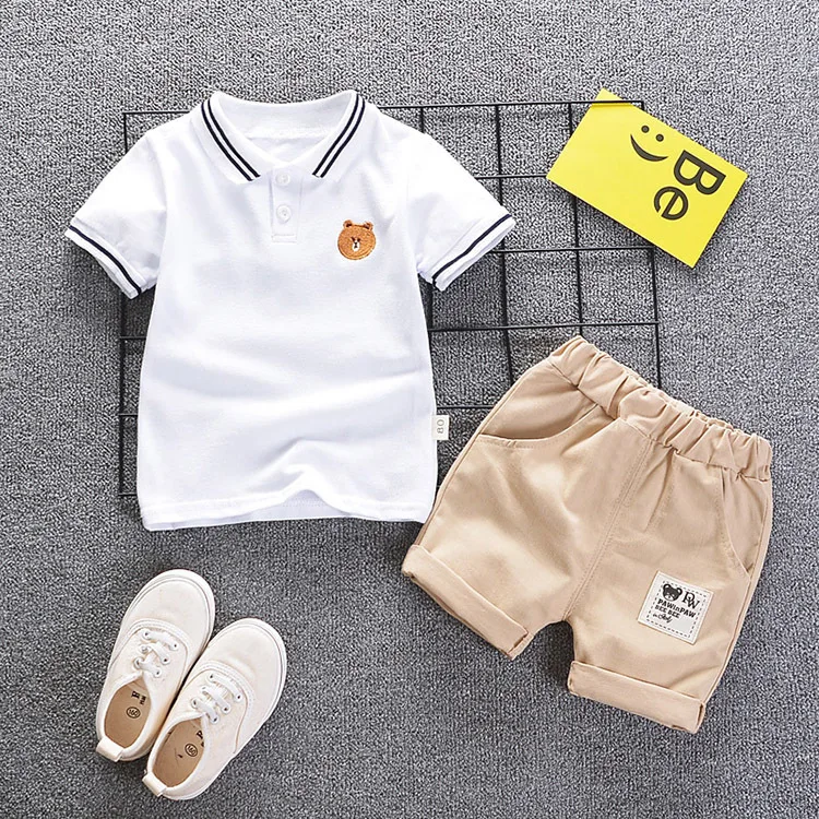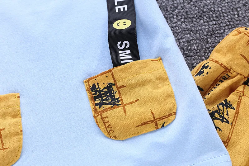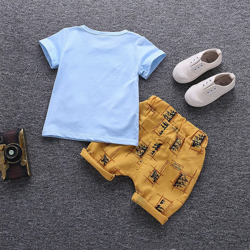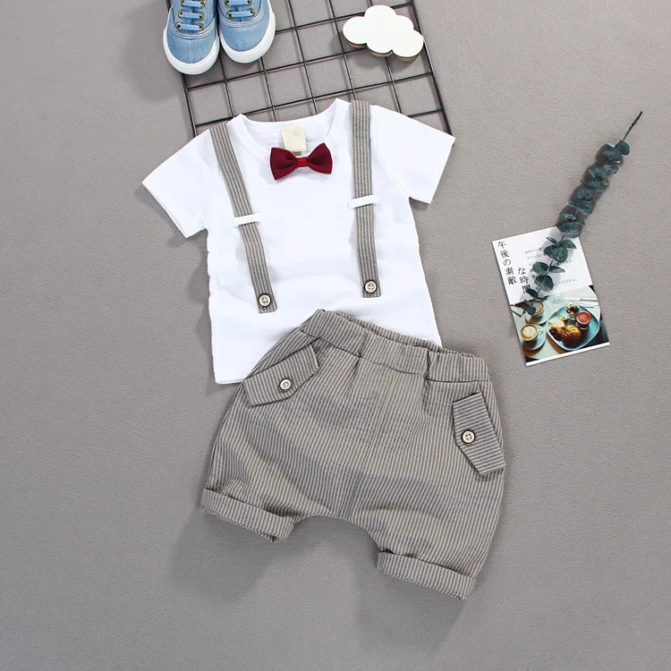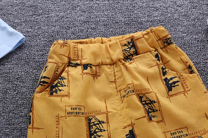 R Z Детский костюм, Новинка лета 2019, повседневный костюм для мальчиков, хлопковая Футболка с галстуком-бабочкой, шорты с имитацией двух предметов с короткими рукавами и принтом