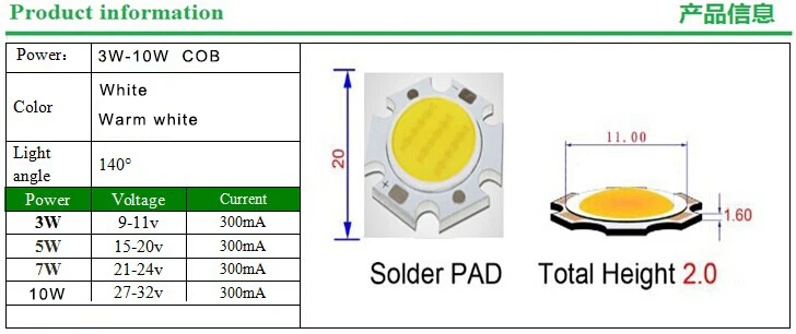 Высокая мощность Epistar COB 3 Вт 5 Вт 7 Вт 10 Вт Постоянный ток 10 В-32 В встроенный SMD для прожектора Прожектора Теплый белыйбелый