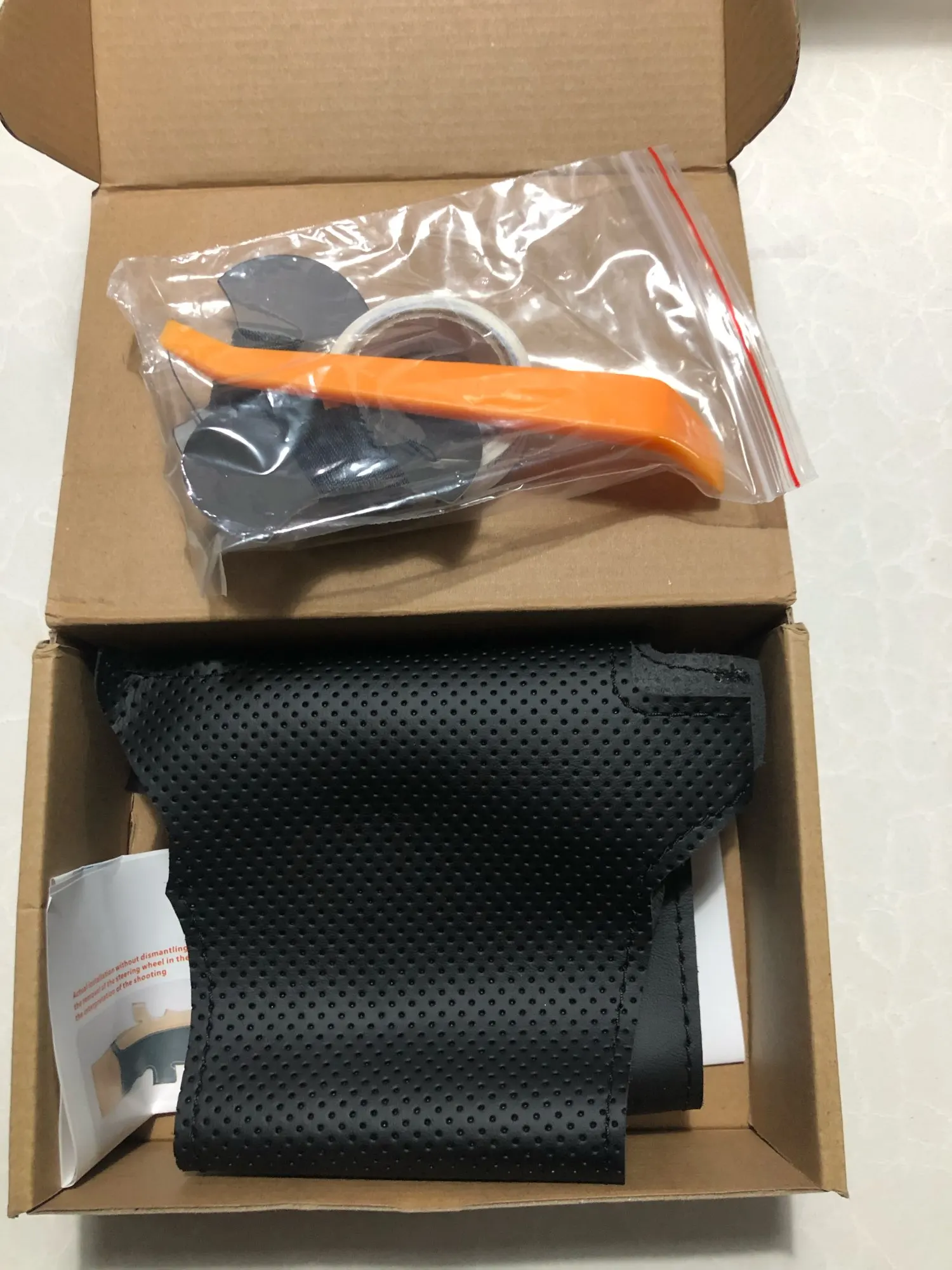Этот чехол может подойти на оригинальный автомобильный руль с кожей, когда вы получите этот чехол руля, вы можете непосредственно установить, не нужно снимать оригинальную кожу руля!