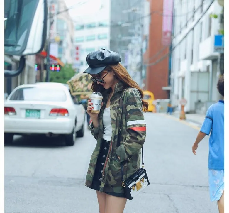 Куртка женская армейского зеленого цвета с принтом, осенняя, W489, 2020