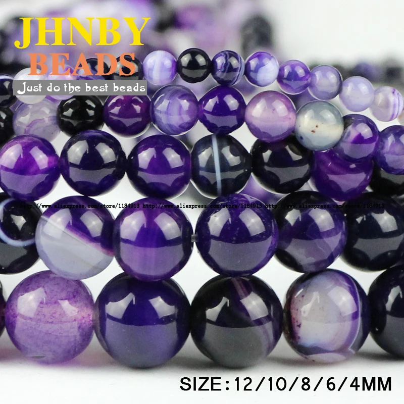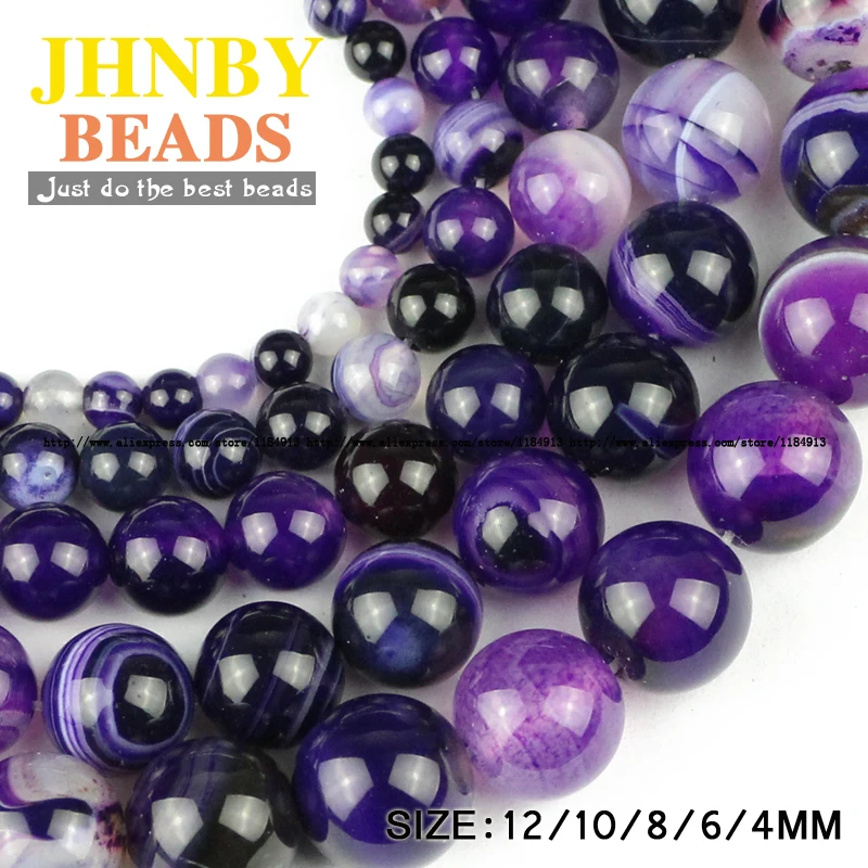 JHNBY AAA Фиолетовый в полоску, натуральный Фиолетовый Оникс камень сердолик, круглые свободные шарики 4681012 мм, для изготовления ювелирных браслетов своими руками