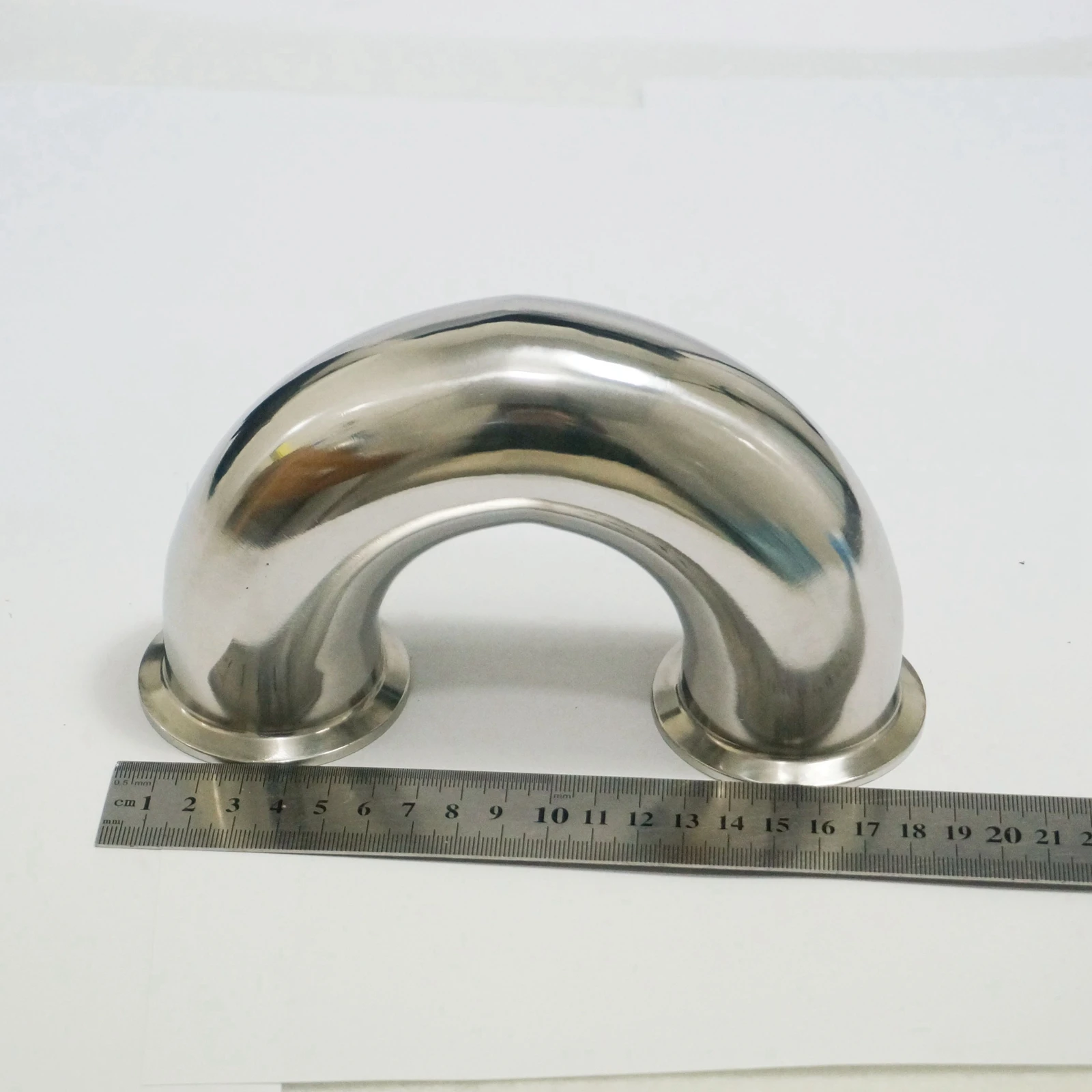 Тройной зажим 304 из нержавеющей стали, санитарный наконечник 51 мм OD 2 дюйма, обратный изгиб 180 градусов, тройной фитинг для труб с клевером для домашнего пивоварения