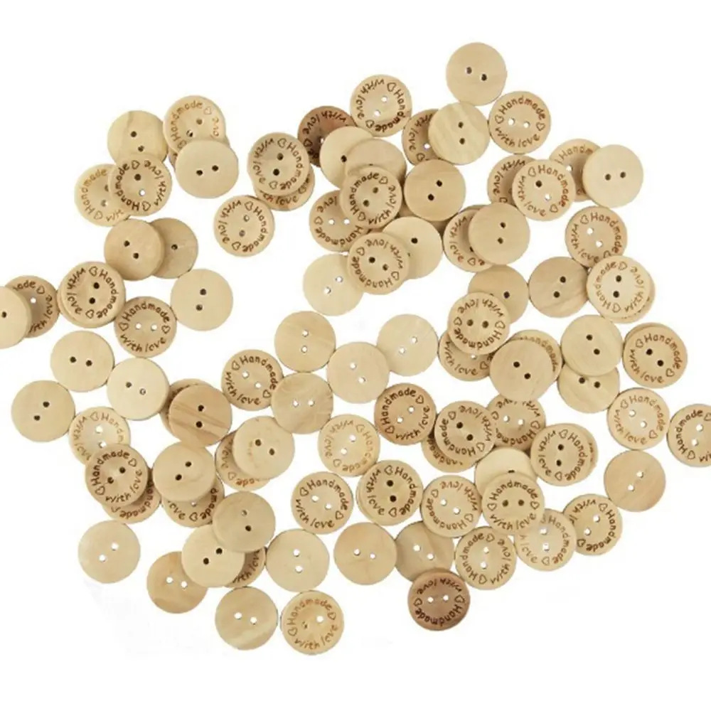 100 шт./упак. ручной работы с любовью швейная деревянная пуговица 15 мм круглые дома фестиваль декоративные пуговицы Лидер продаж