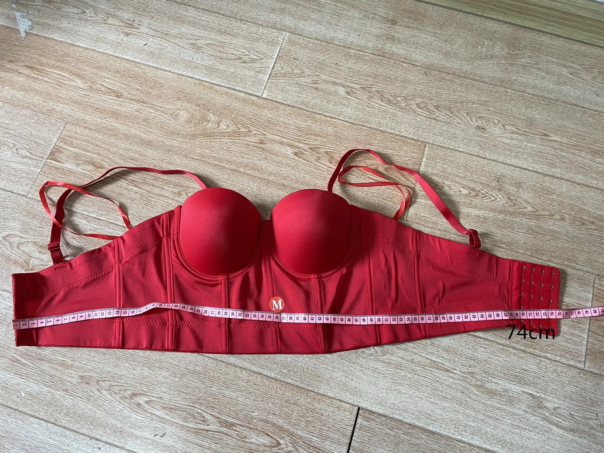 Корсет замечательный! Очень долго пыталась определиться с размером, в итоге на мои параметры (Обхват бедер: 94 Обхват талии: 71 Под грудью: 75 Обхват груди: 90) размер М немного большеват в груди, но если носить с лямками, то ничего не вываливается, сзади всё застегнуто на самую узкую полосу. Корсет шикарный, хочу еще заказать черный, но попробую взять размер поменьше. Спасибо продавцу, товар качественный!