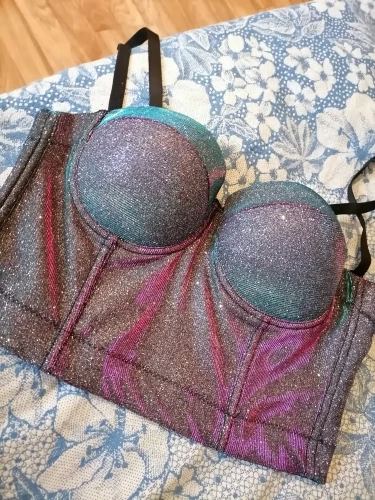 Топ пушка! Очень красивый и смотрится дорого. Блестки в самой ткани, поэтому не сильно сварится. Переливается круто. Я размером s. Грудь 2B- сел идеально.