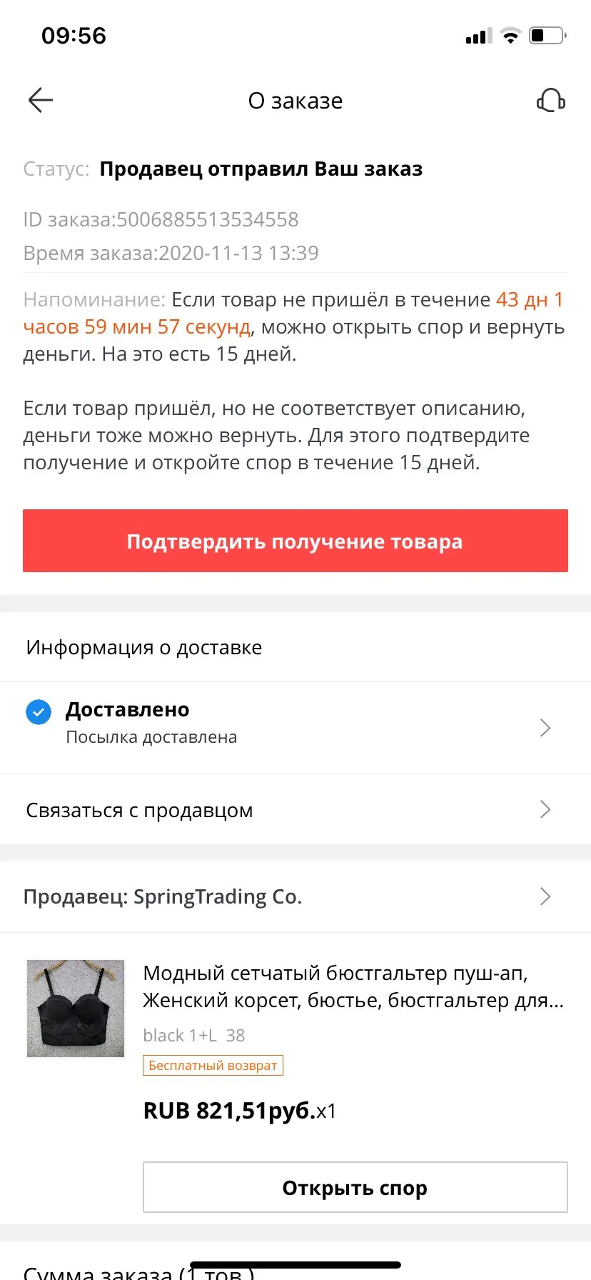заказала 13 октября, получила 30 октября доставка осуществлялась за тольятти, Самарская область трек отслеживался на всём пути на момент заказа цена составляла 834 руб 91 коп. на рост 158, вес 45 кг большева. не обтягивает. хотя бронзовый сидит идеально. при том, что фасон одинаковый