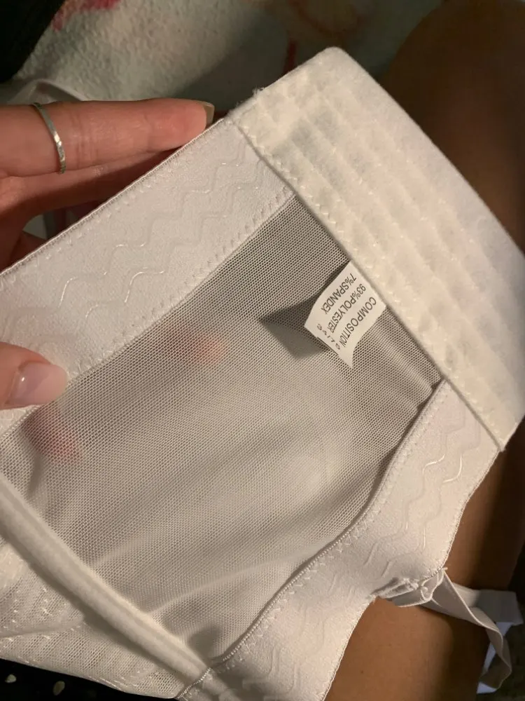 Качество хорошее, внутри есть силиконовые полоски. На 75D чашка маленькая, в объеме на самые последние крючки застегнула, чтобы сидел плотно, если застегивать дальше будет спадать. Мне пришел с браком, открыла спор, вернули 6$
