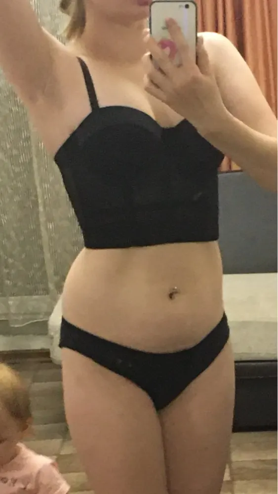 Классное бюстье. В первый раз заказала черную М-ку - в груди и в подмышках большевато, некрасиво торчит, даже если застегнуть на самый первый ряд крючков. Во второй раз заказала меньше, S хаки. В груди норм, все отлично, в талии немного тесновато, но терпимо) застегивала на самый крайний ряд. Грудь 84см, неполная полторашка, талия 65. Если талия больше, то будут некрасиво выпирать бока.