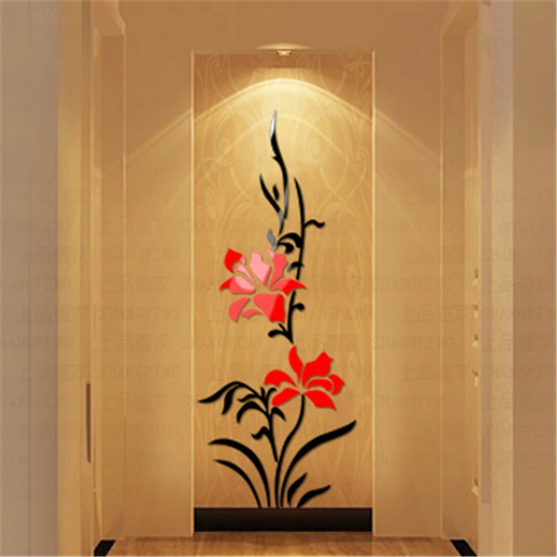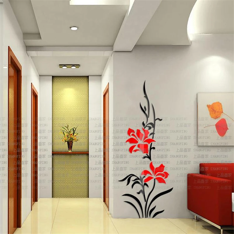 Оптовая продажа, новинка 2016, креативные орхидеи, 3d стерео акриловые хрустальные настенные наклейки для гостиной, прихожей, декоративные наклейки для дома