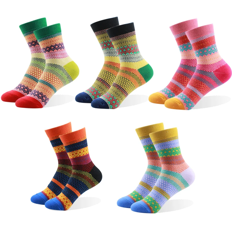 100% новейший бренд ретро этика Женщины хлопок полосатые многоцветные Модные Повседневные платья женские носки хороший подарок хорошее качество