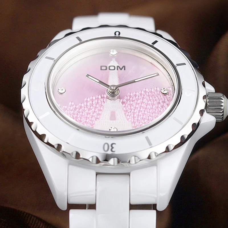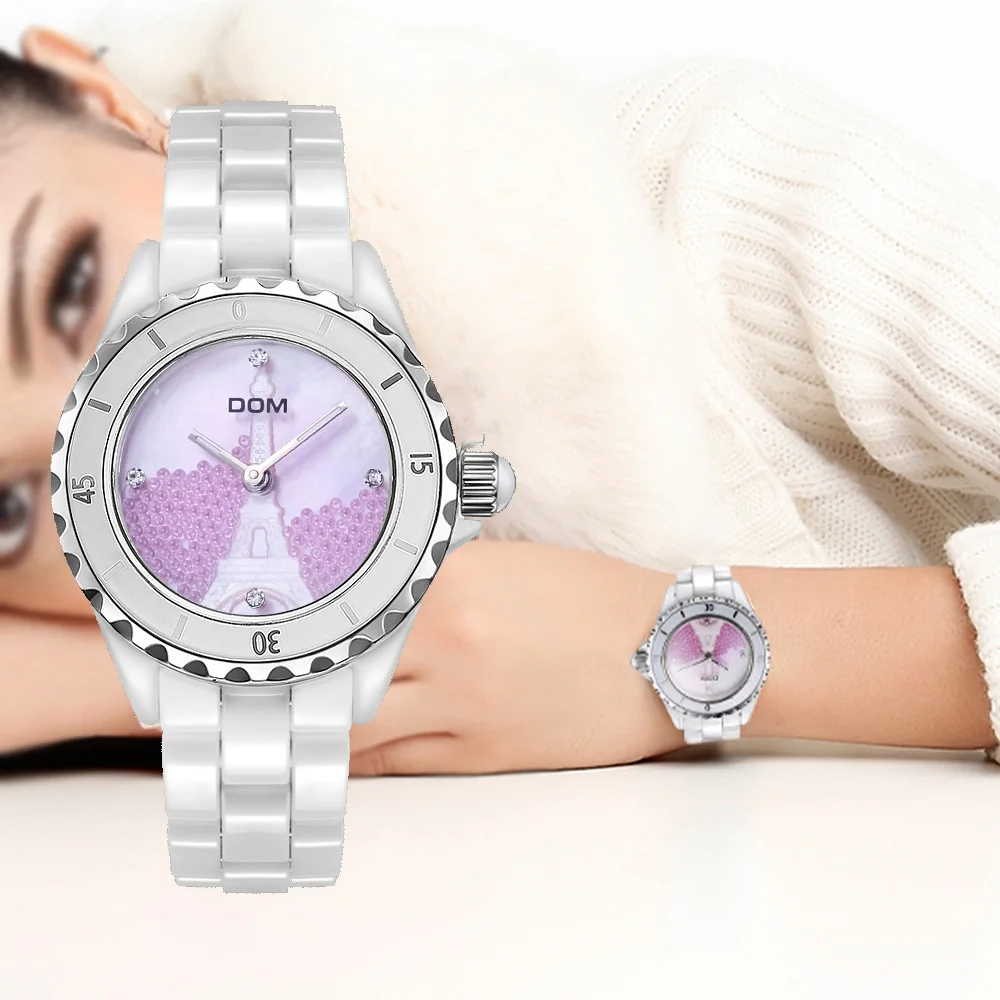 DOM брендовые модные часы, женские роскошные керамические наручные часы, женские часы под платье, повседневные керамические часы, женские часы