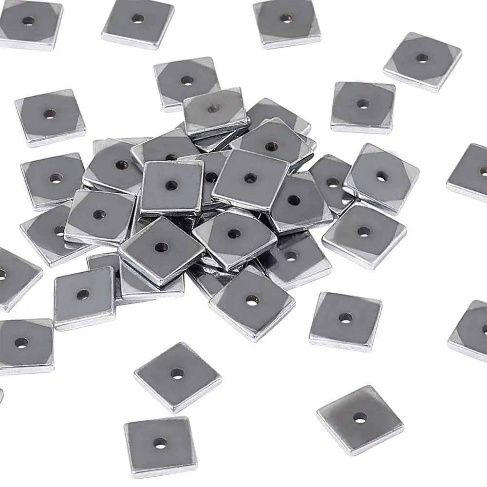 50-73 шт., квадратные гальванические немагнитные бусины из гематита, аксессуары для браслетов, Ювелирная фурнитура, отверстие: 1 мм