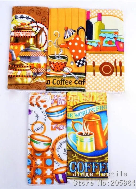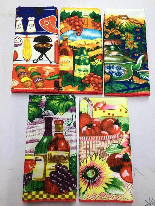 Бесплатная доставка горячая Распродажа 5 шт.лот Впитывающее кухонное полотенце из микрофибры, ткань для мытья посуды, Цветные Печатные Чайные Полотенца инструменты для готовки