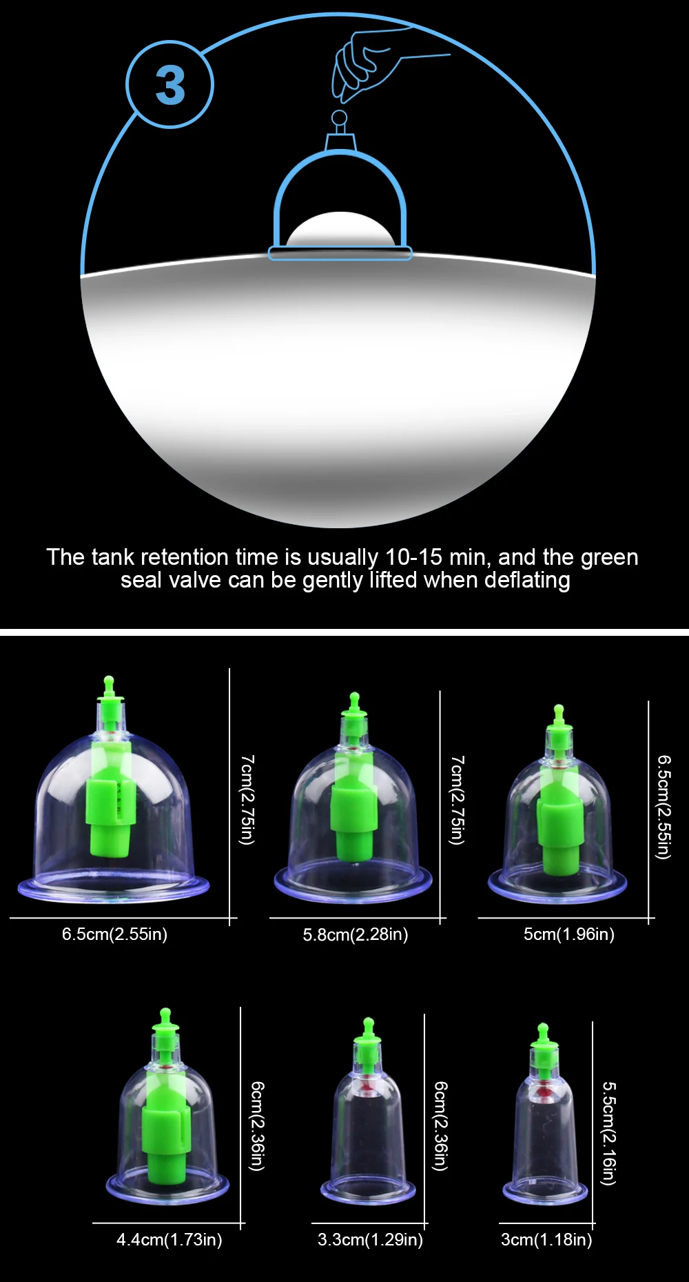 Вакуумные банки 6 шт., китайские вакуумные чашки комплект для постановки банок Вытяните вакуумный аппарат, терапевтические расслабляющие массажеры