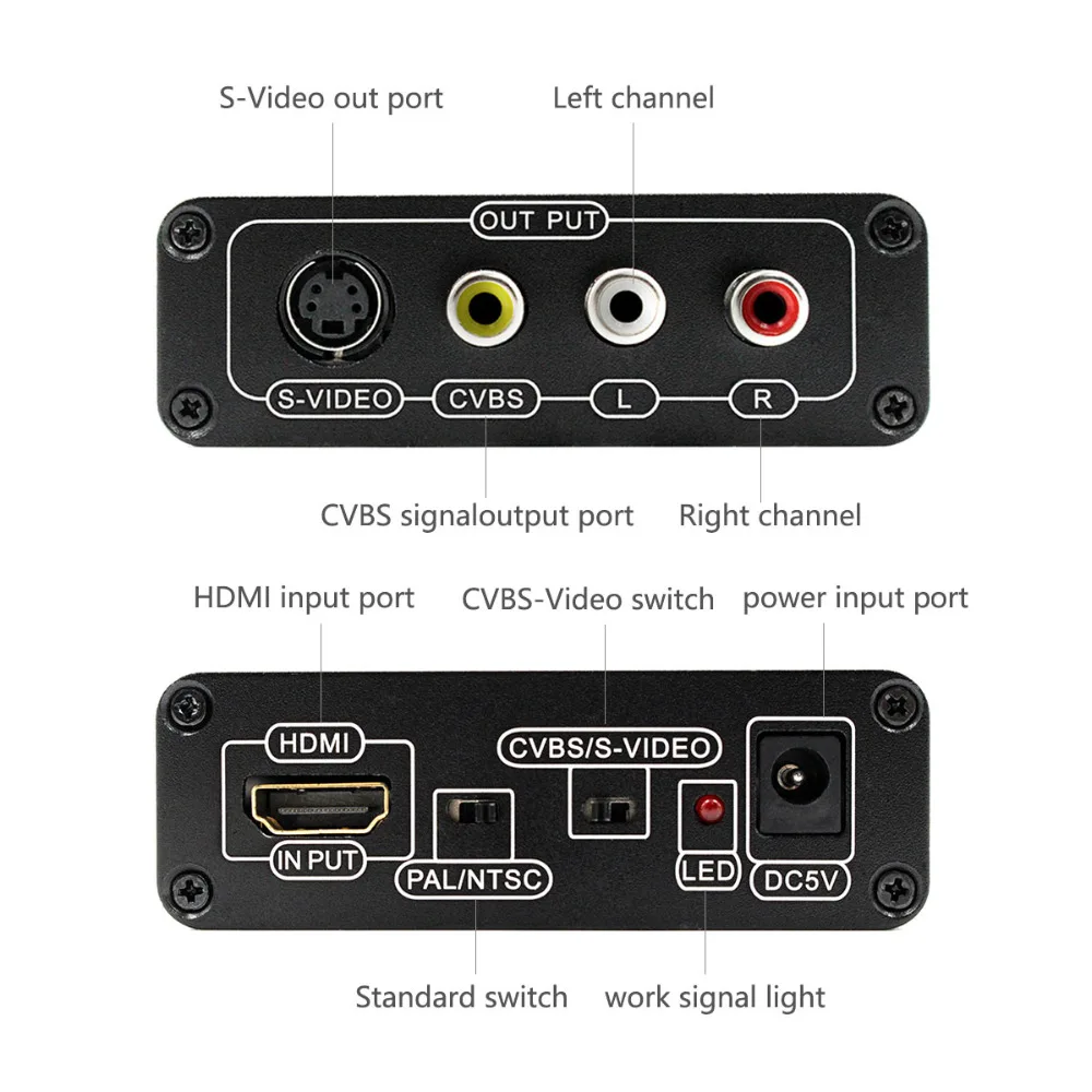 Этот конвертер предназначен для преобразования HDMI в композитное видео или S-Video.It позволяет только оборудованное выходное устройство HDMI подключено к ЭЛТ-телевизору.В основном используется для тестирования AV оборудования. Предоставляет только 3 RCA и av-кабеля к телевизору и hdmi-дисплейному устройству, таким как HD TV, кроме того, источник питания, вы будете чувствовать себя захватывающим. Веселитесь!Примечание: Эта вещь не совместима с XBOX360.