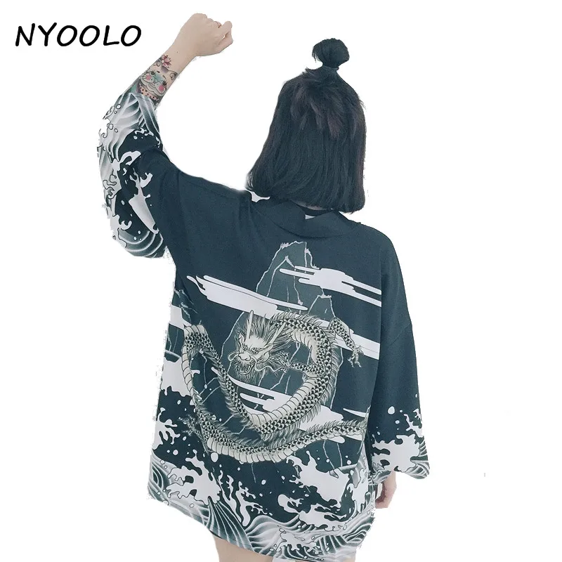 NYOOLO, винтажный, новинка, летний, с принтом волн дракона, шифон, Солнцезащитный кардиган, кимоно, Солнцезащитная рубашка, женская одежда, верхняя одежда