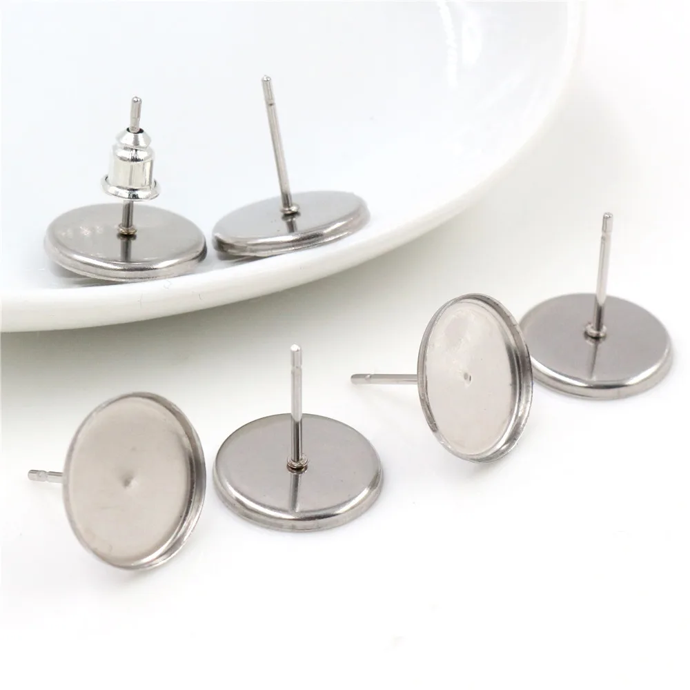 (Не выцветает) 12 мм 10 мм 8 мм 20 шт сережки из нержавеющей стали, сережки пустыеоснование, подходят 8-12 мм стеклянные кабошоны; Серьги оправы
