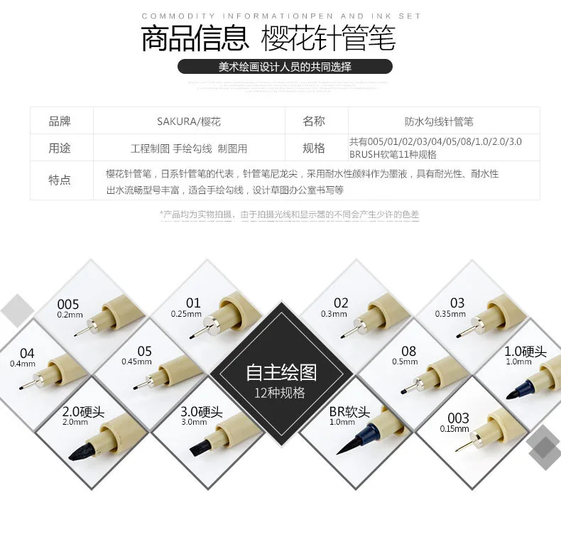 0,05 1 см японская Сакура ручка с иглой Профессиональный рисунок волокна эскиз авторучка для дизайнера архитектора офиса школы DP028
