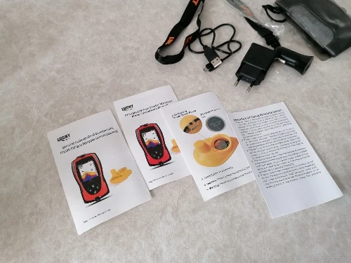 В комплекте идут: эхолот, беспроводной датчик, провод для зарядки, лента-держатель на шею, водонепроницаемый чехол, блок питания для розетки, блок питания для прикуривателя автомобиля, инструкция на разных языках, в том числе на русском. Сам прибор компактный, удобный, не тяжелый. Хорошо лежит в руке. У прибора чёткий цветной экран. Меню русифицировано. Все настройки простые и понятные. Показания точные, проверила у себя в пруду, где много рыбаков. И собираюсь тестировать уже в реалиях профессиональной рыбалки. Прибор доставляется из России. Пришел ко мне через три дня после заказа, доставка курьером до двери.