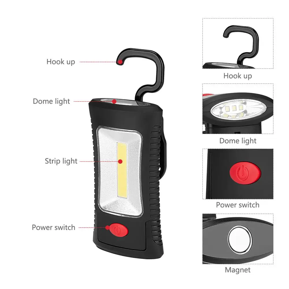 Очень мощный свет, с магнитом и крючком. В комплекте. Также с магнитом можно вращать: Идеально подходит для автомобиля