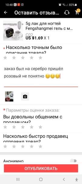 - Соответствие описанию: 94%