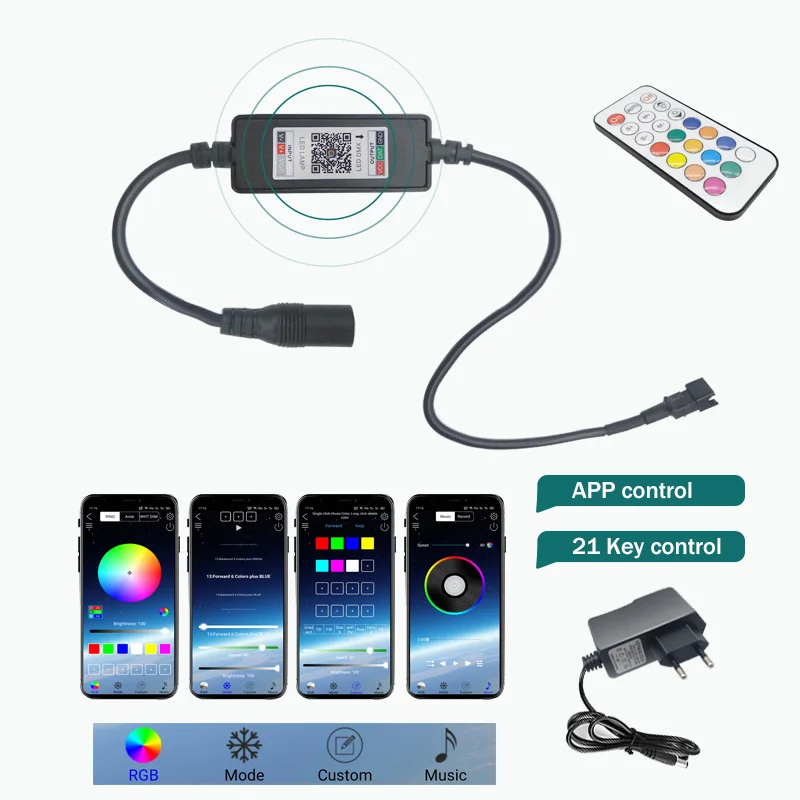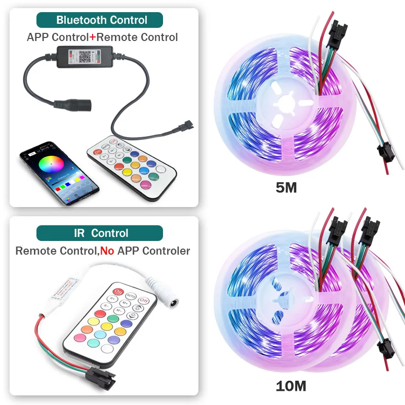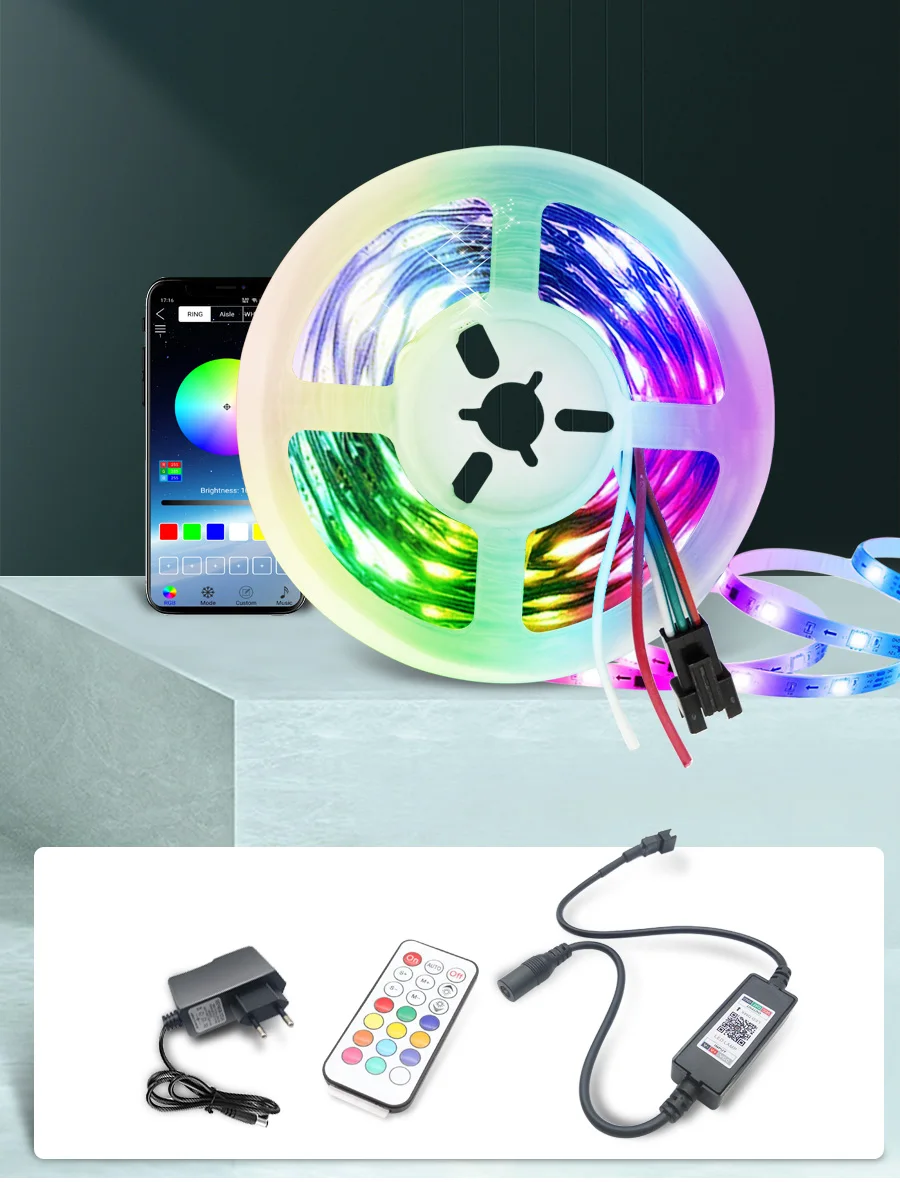 Гибкая светодиодная лента RGB с индивидуальной адресацией, ИК-контроллер с Bluetooth, адаптер постоянного тока 12 В, 20 м, цвет мечты