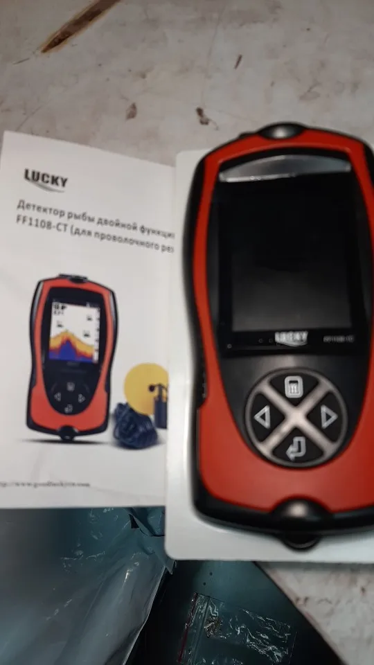 Доставка очень быстрая, до Екб 4 дня. Сам эхолот очень добротный, вроде как работает (на фото демо режим). Комплект хороший, 2 зарядки - для прикуривателя и розетки, ремешок. Брал в подарок отцу, как только проверим в деле, дополню отзыв. Купил за ~2200