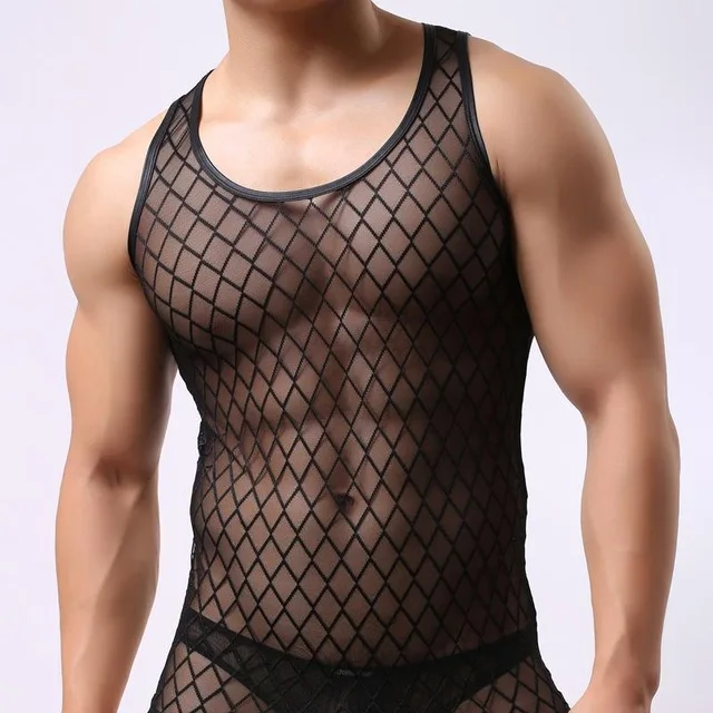 Майка мужская прозрачная сетчатая в клетку, пикантный жилет для геев, Экзотическая одежда для дома и отдыха, клуба, нижняя одежда, лето