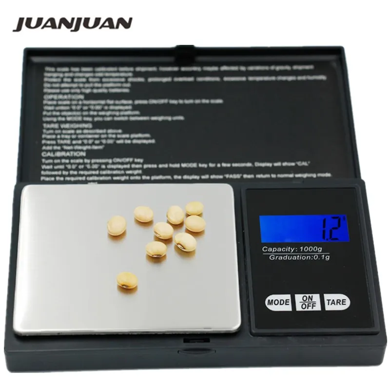 10 шт. портативные весы цифровые карманные весы ювелирные изделия кухонные 0,1g x 1000g с подсветкой 1 кг ЖК-дисплей дисплей