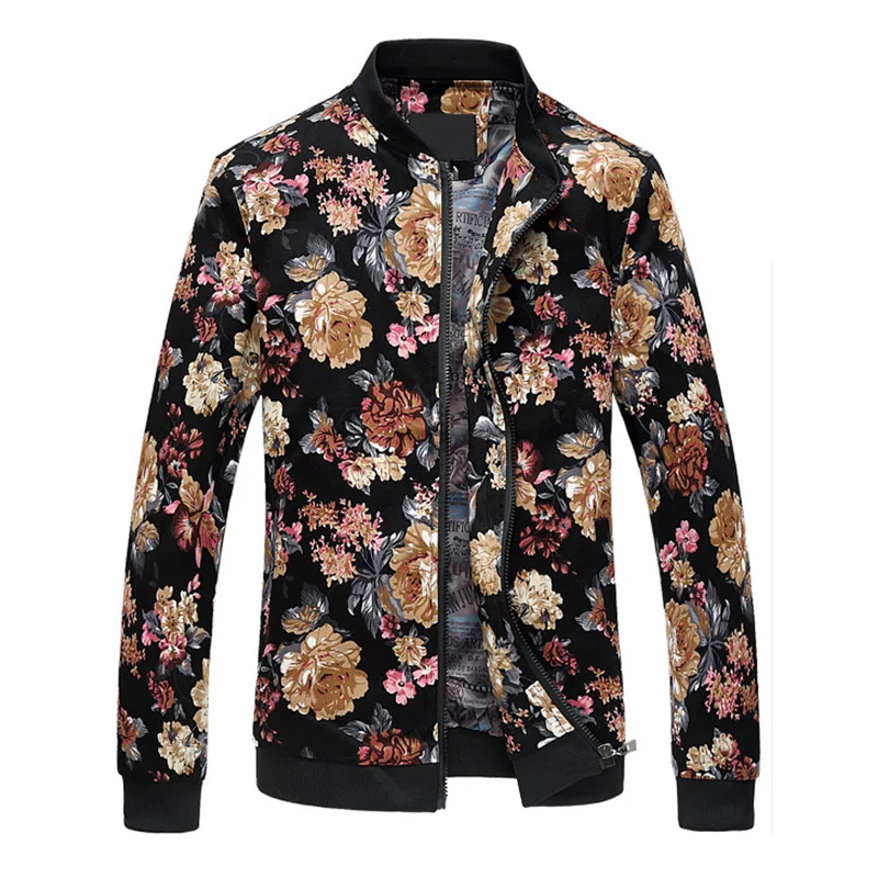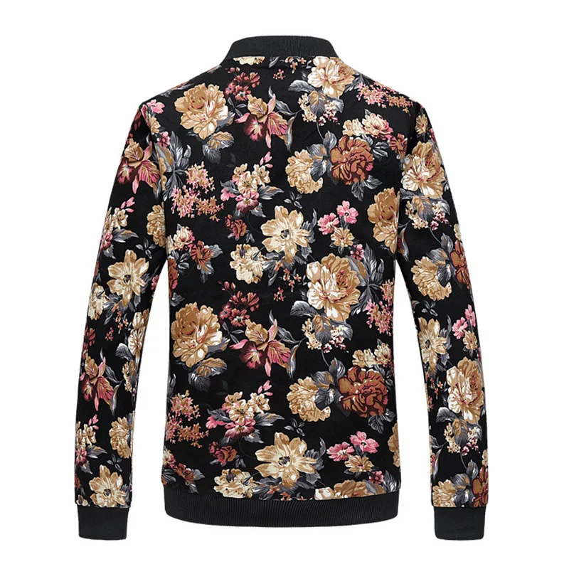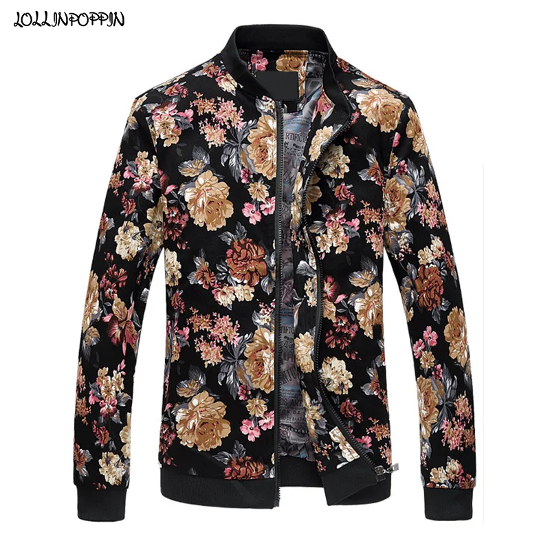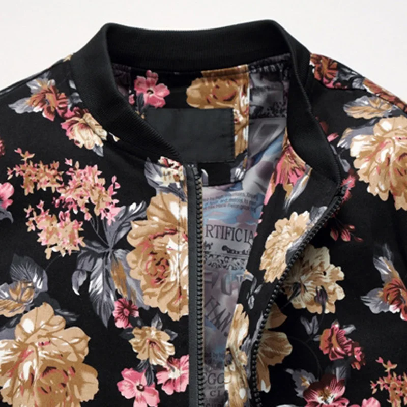 Мужская куртка-бомбер из хлопка, с цветочным принтом, с подкладкой и воротником-стойкой, весна-осень, 2020