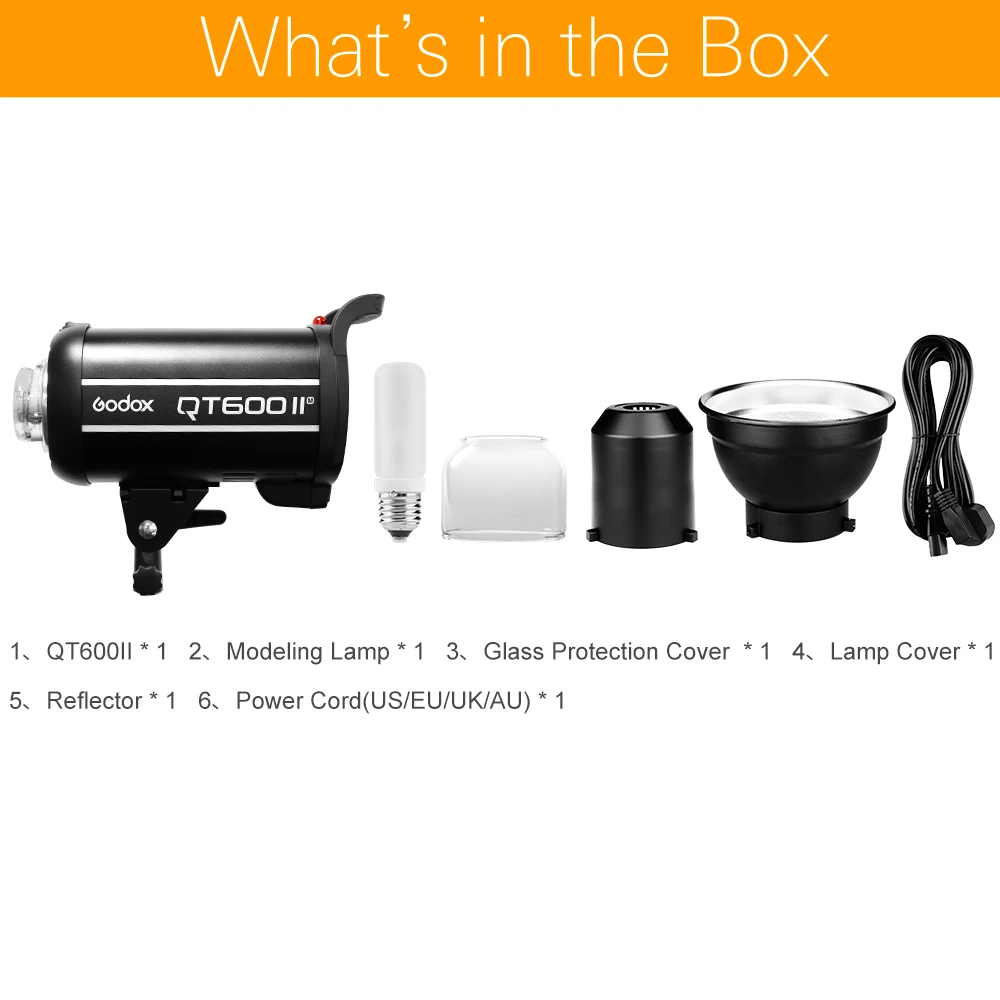 Высокоскоростной стробоскопический светильник Godox QT600II 600WS имеет комплексное обновление от первого поколения QT600 с изысканным дизайном, передовой техникой и множеством функций, благодаря встроенной беспроводной системе управления Godox 2,4G обеспечивает удобное Беспроводное управление и высокоскоростную вспышку, чтобы запечатлеть прекрасный момент.