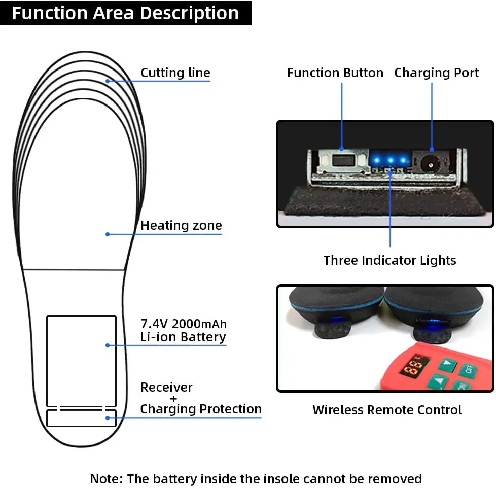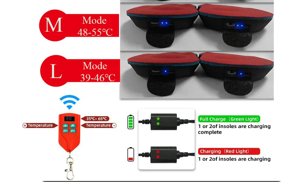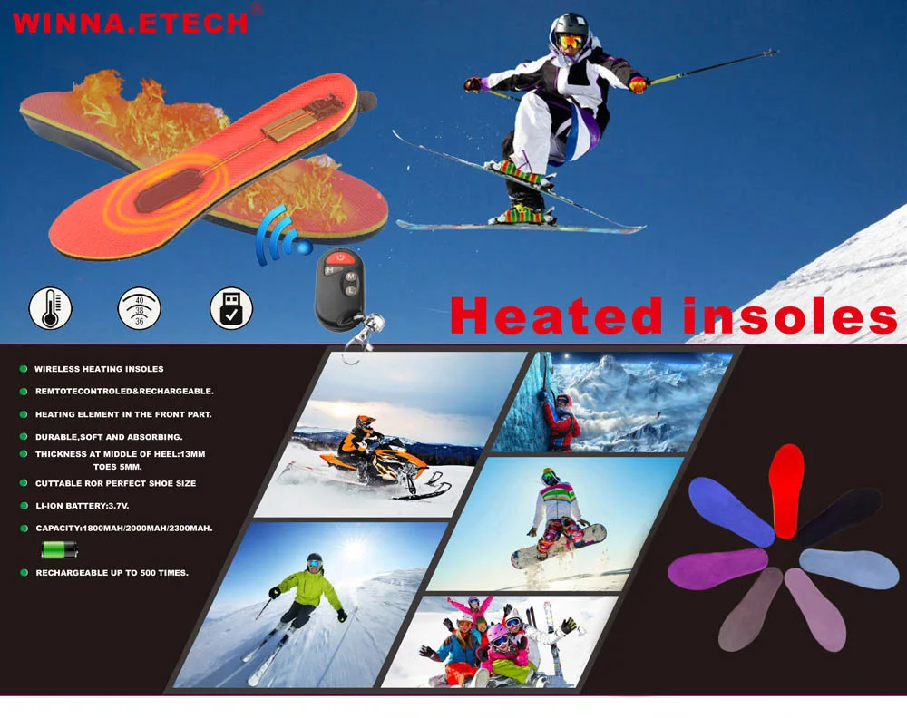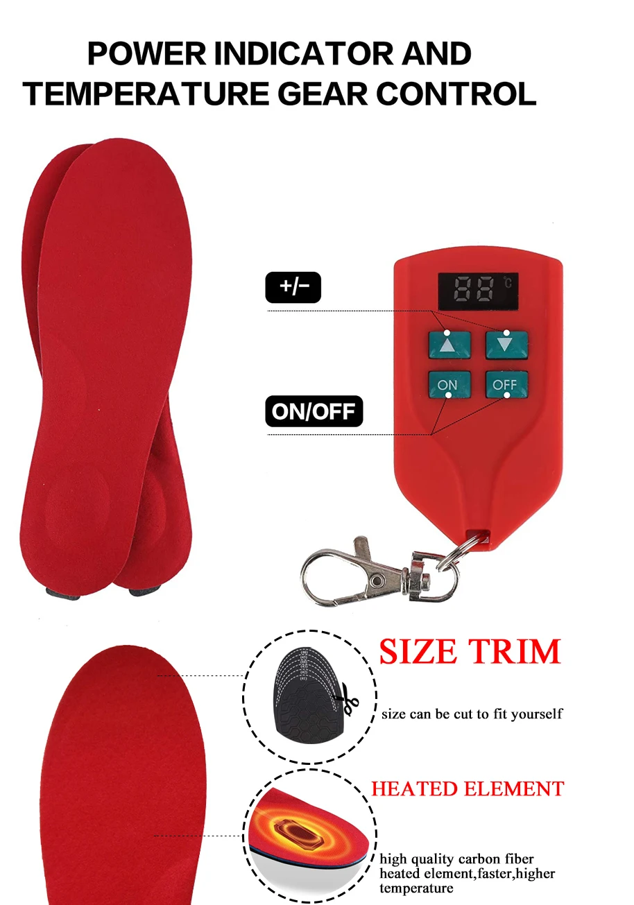 Стельки с подогревом для обуви, теплые стельки с аккумулятором и зарядкой, 2000 мАч, европейские размеры 35-46 #