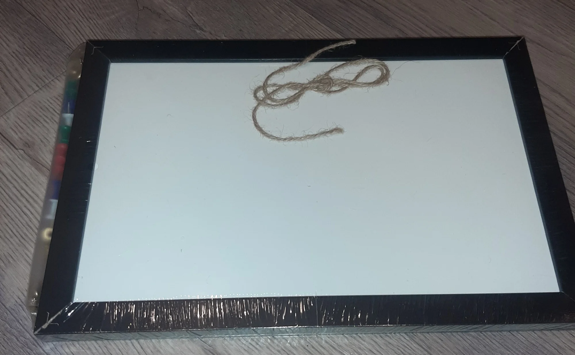 В обрамлении дерева. Может быть установлен на любую стену или просто прислониться к чему угодно в качестве портативной доски для использования.