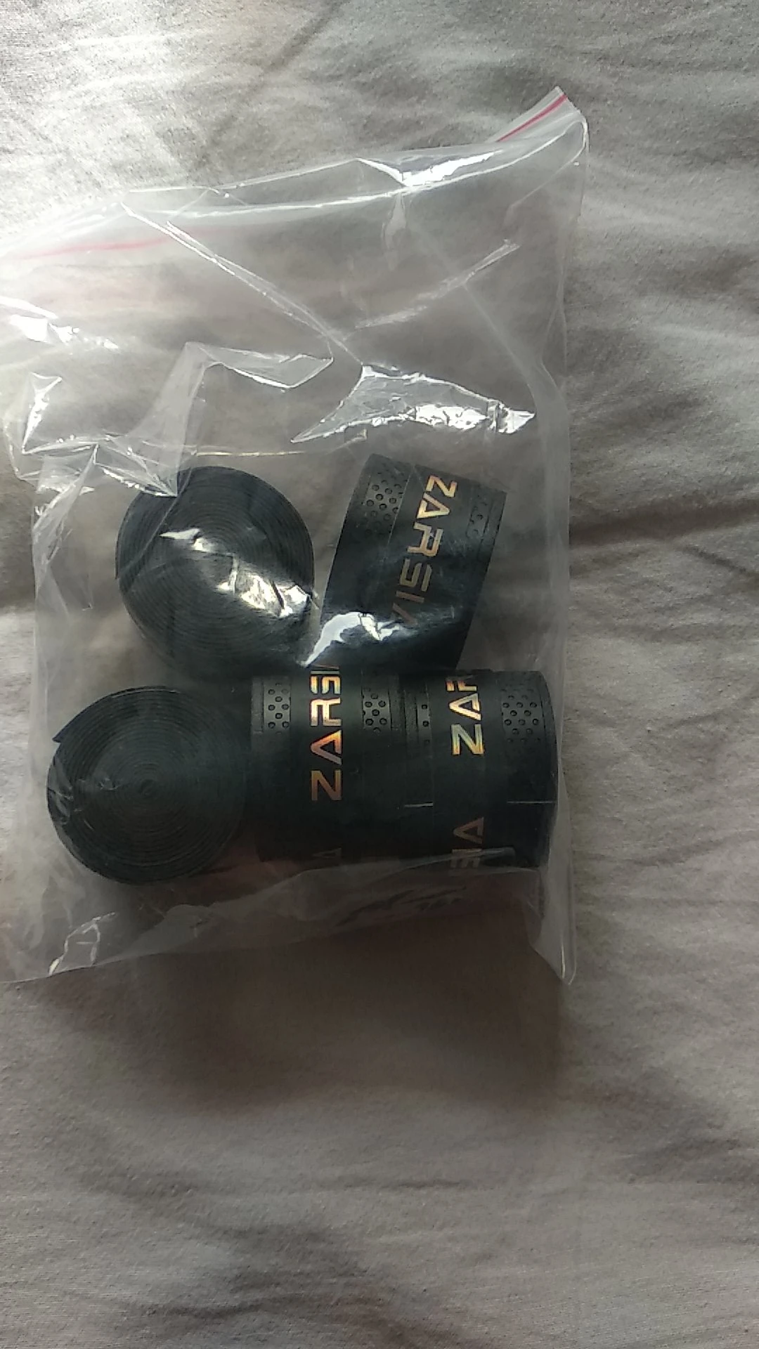 Посылка шла очень долго - пришла тогда, когда срок защиты уже исчерпался. По товару - на первый взгляд очень качественное исполнение, похоже на фирменные теннисные обмотки.