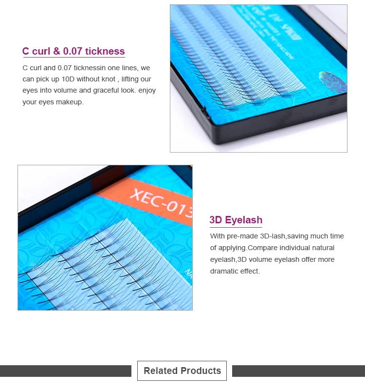 Популярная толщина: 0,07 мм, полуфабрикат 3D ресниц