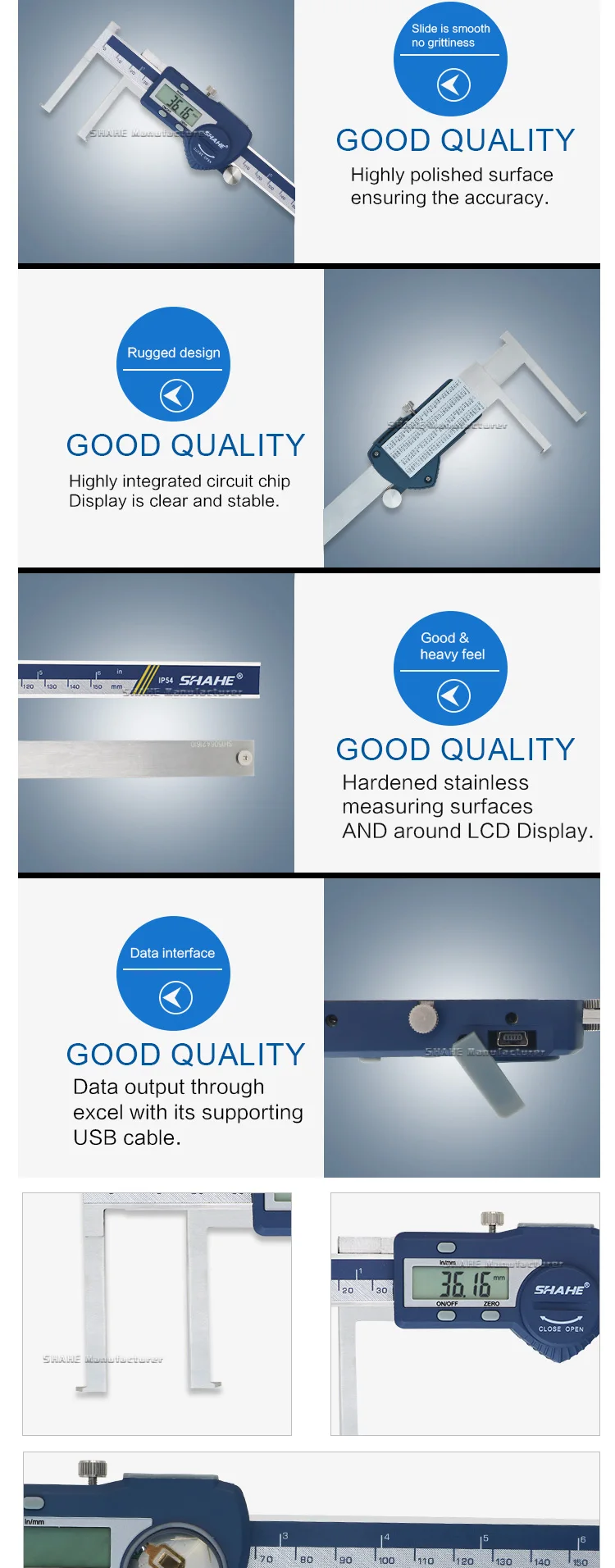 Электронный штангенциркуль shahe 8-150 мм с внутренним пазом, цифровой штангенциркуль с ножом, цифровой Электронный штангенциркуль, линейка