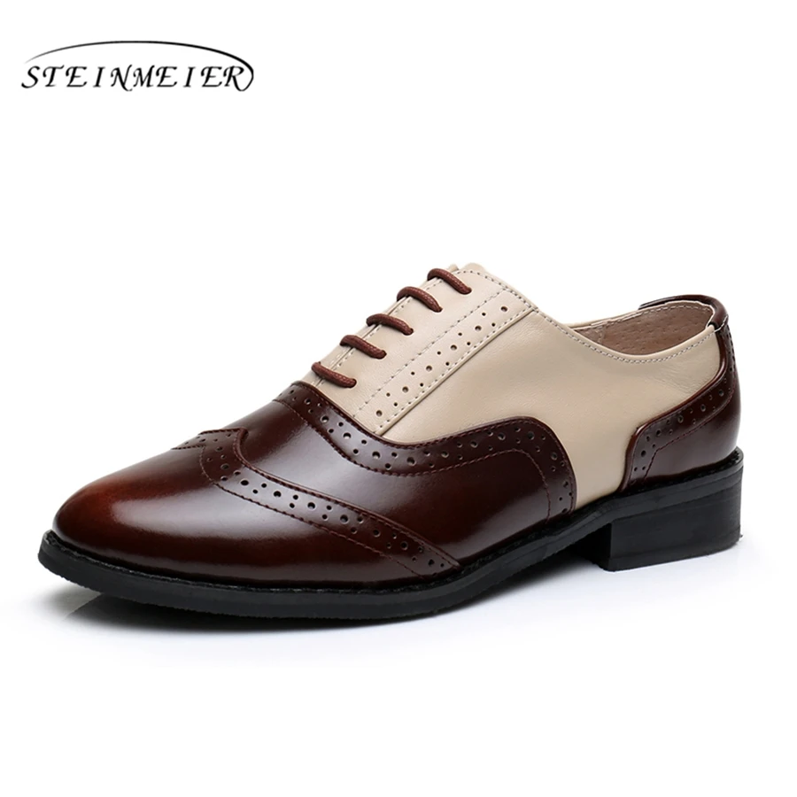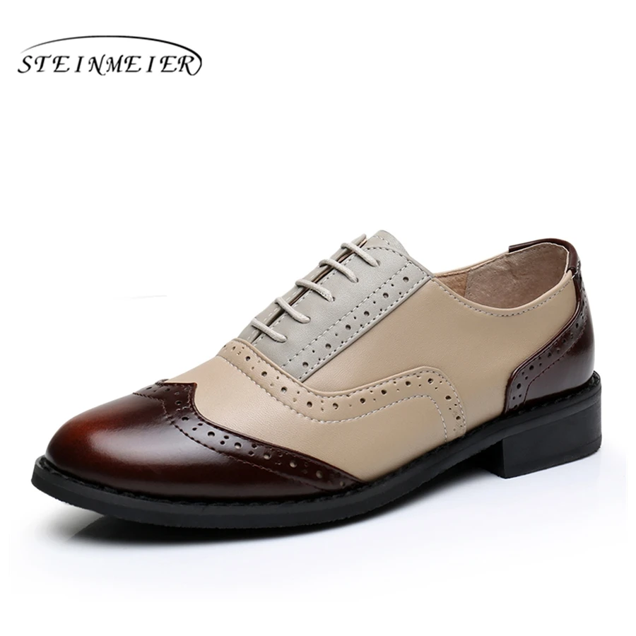 Женские туфли-оксфорды из натуральной кожи, с круглым носком