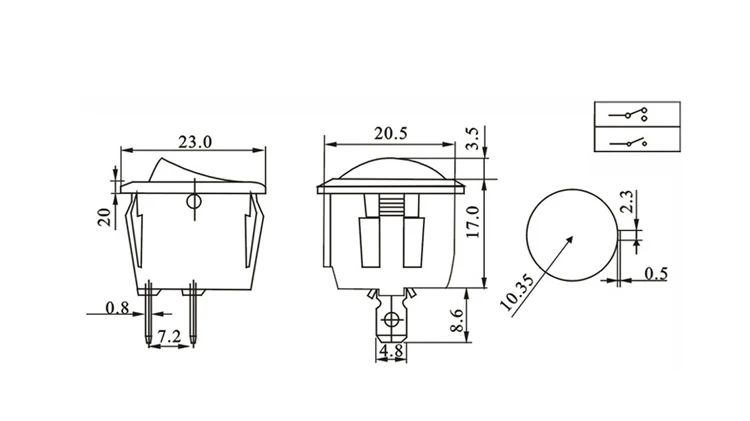 Большие круглые Клавишные переключатели 10 шт.лот диаметром 23 мм, КРАСНЫЙ 2-контактный ВКЛ.ВЫКЛ. Клавишный переключатель 10 а125 В 6 А250 В