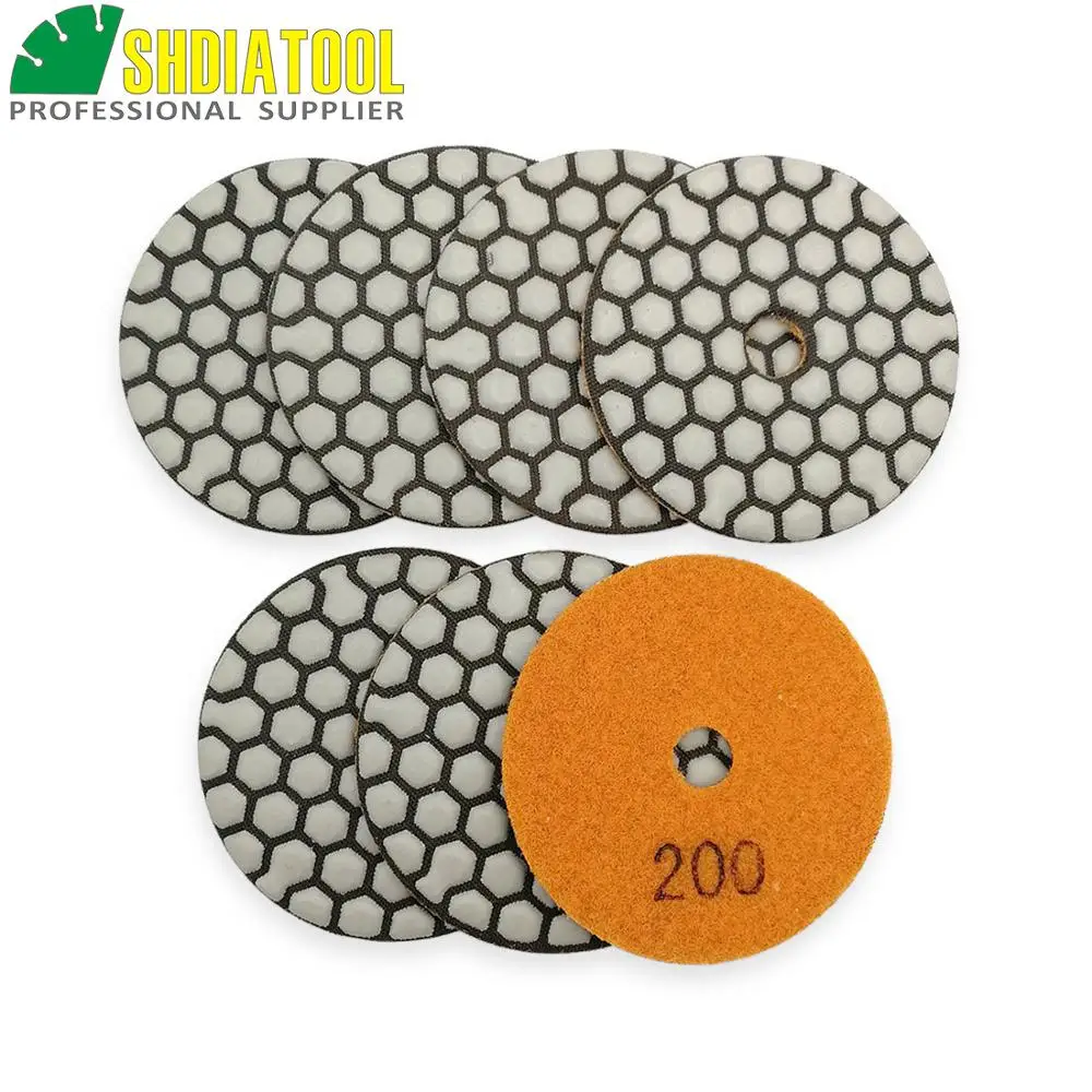 DIATOOL 7pcs 3inch #200 Diamond Dry Polishing Pads Resin Bond Flexi...