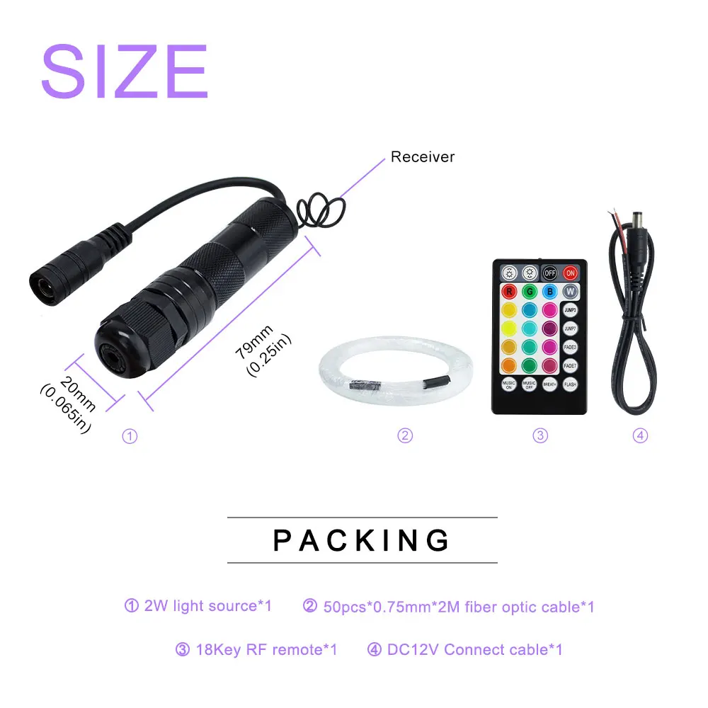DC12V 2 Вт RGB led волоконно-оптическое освещение 0,75 мм * 50 шт * 2 м оптическое волокно для украшения автомобильных звездных огней