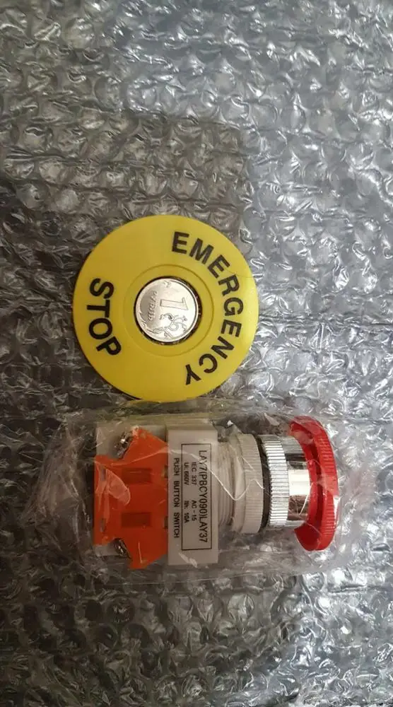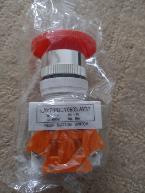 Доставка 5 недель. Заказывал несколько разных позиций так, что упаковали хорошо в картонную коробку. комплектность соответствует. кнопка хлипковата. хлопнуть по такой от души не получится. 2 пары контактов НЗ и НО. Не перепутайте. С фиксацией. 10 А я б забоялся. лучше размыкать цепь управления.