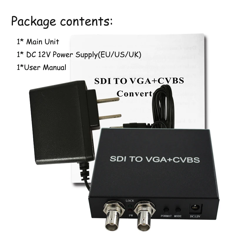 Этот продукт может конвертировать SDI (SDI-SDI/HD-SDI/3GSDI) сигналК VGA или AV сигналу, и он включает
